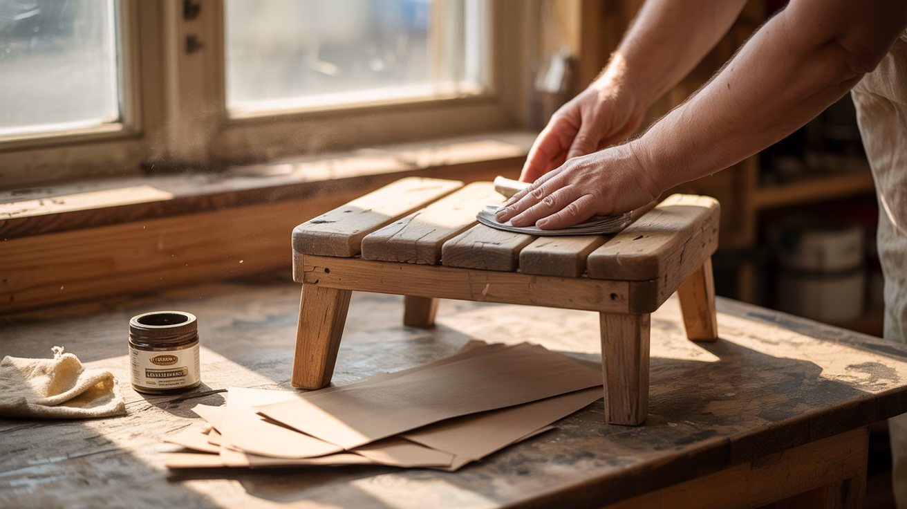 - Wyrównaj powierzchnię papierem 150–180, a następnie wygładź 220–320.